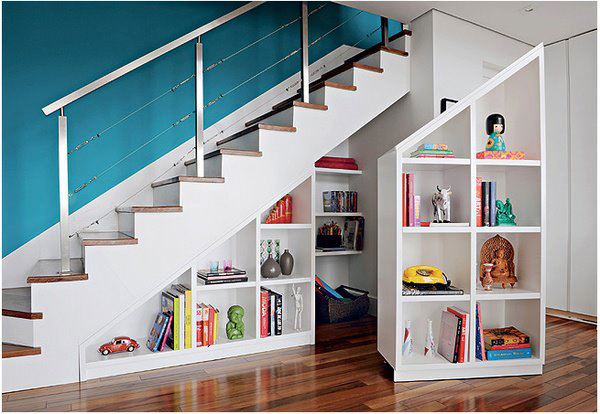 Si votre escalier est situé au niveau de l’entrée, il peut être intéressant d’y aménager un dressing. Manteaux, chaussures et sacs seront rangés à l’abris des regards tout en restant à disposition près de la porte de votre habitation. Entre la cuisine et la salle à manger, vous préférerez sans doute profiter de cet espace offert par votre escalier pour y créer un espace de rangement avec des placards sur-mesure. Portes battantes, coulissantes, ou tiroirs, dans la couleur de votre choix : il existe des milliers de possibilités. Enfin, dans le salon, on privilégiera l’installation d’une bibliothèque ou d’un meuble télé, pour un espace relativement épuré alliant rangement et décoration.