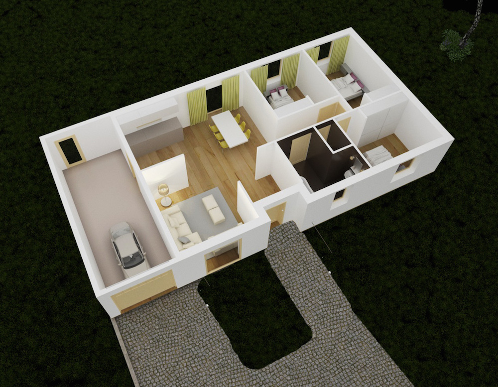 Ce pavillon traditionnel de plain-pied, au plan classique, propose des dimensions raisonnables allant de 78 m² à 101 m². Son atout de poids ? Un excellent rapport surface habitable/prix. Et en prime, elle offre tout le confort et le raffinement moderne.