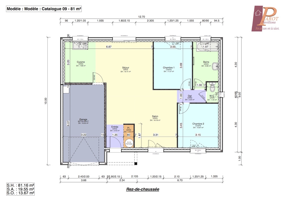 Belle maison traditionnelle de plain-pied, la Cubique se décline dans des dimensions allant de 81 m² à 110 m².