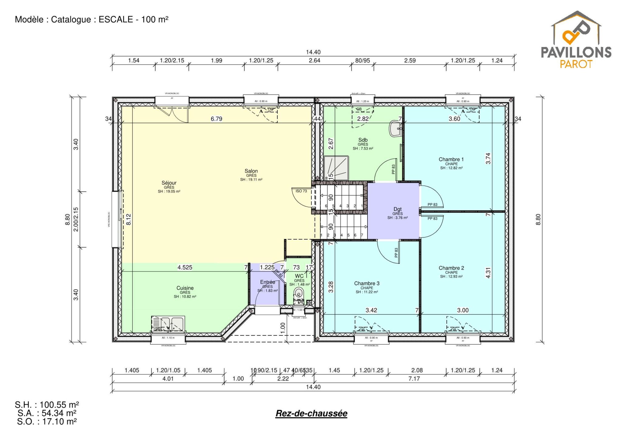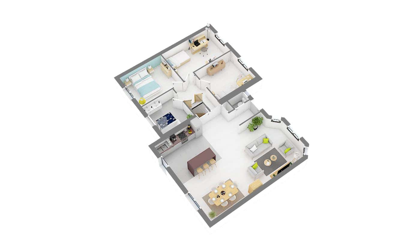 Ce pavillon traditionnel, qui se prête à tous les types de terrains, est vraiment très original. Outre son plan personnalisable, d’une surface allant de 80 m² à 110 m², il se distingue par son demi-niveau qui offre une configuration fonctionnelle et singulière. L’espace jour et l’espace nuit sont ainsi bien séparés.