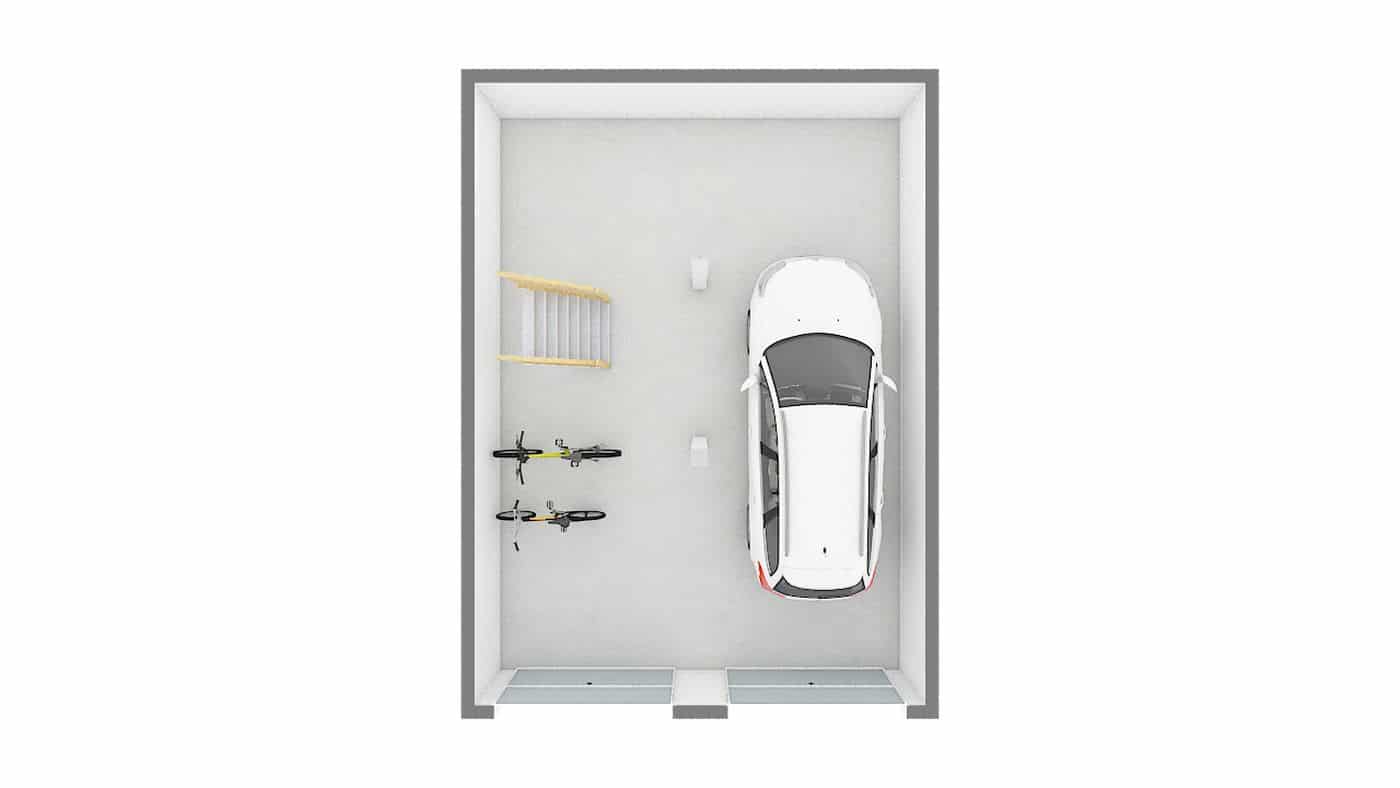 C’est un modèle très design et moderne. Vous apprécierez le double garage intégré en sous-sol, son porche d’entrée, son toit à double pente et l’enduit bi-tons de ses façades.
