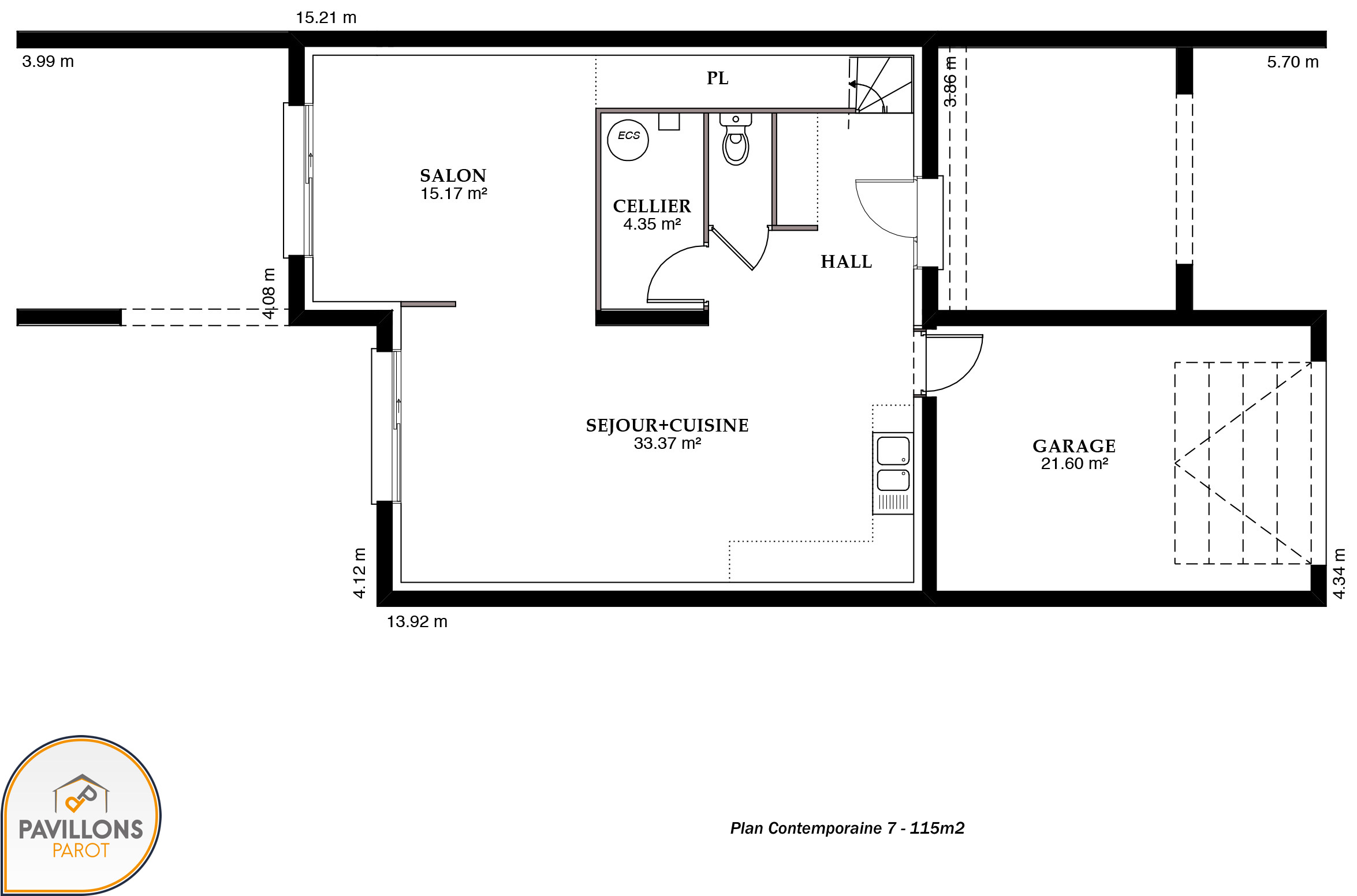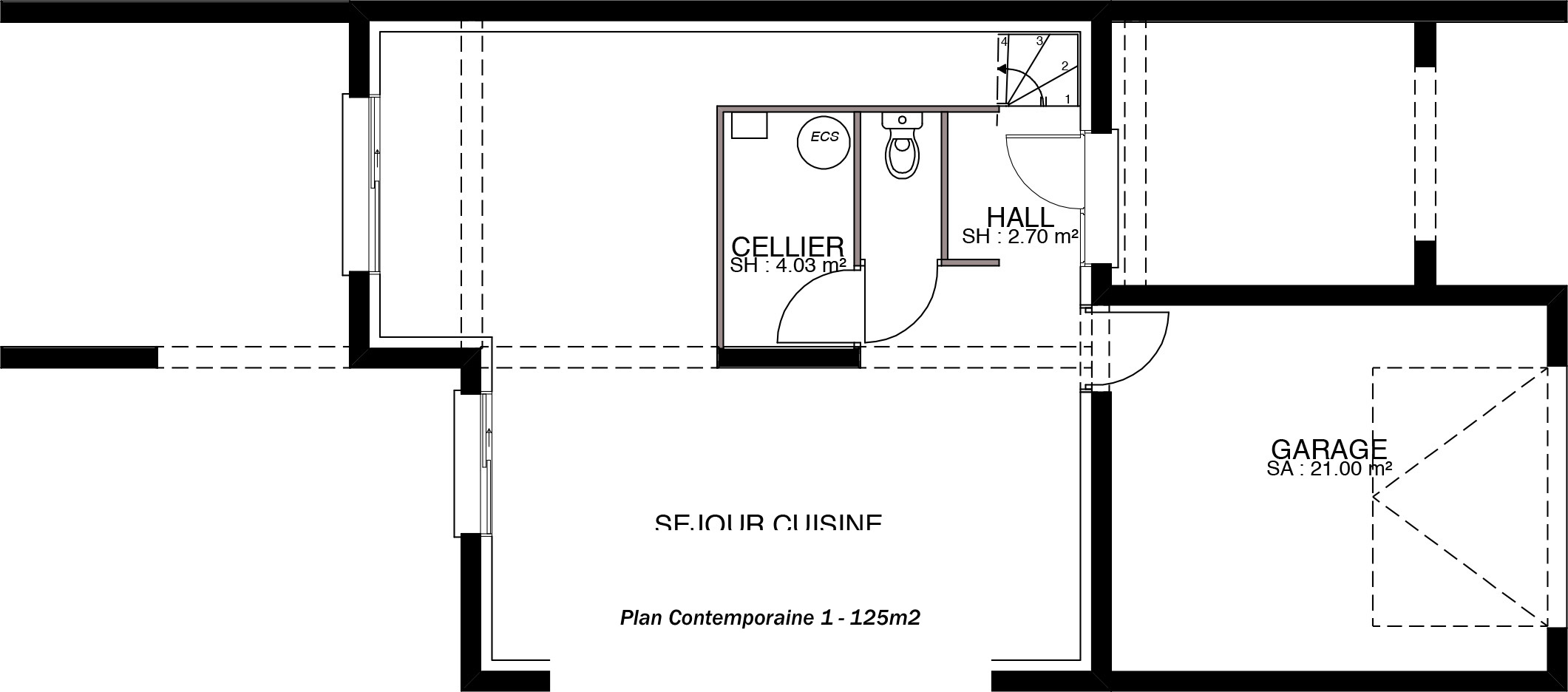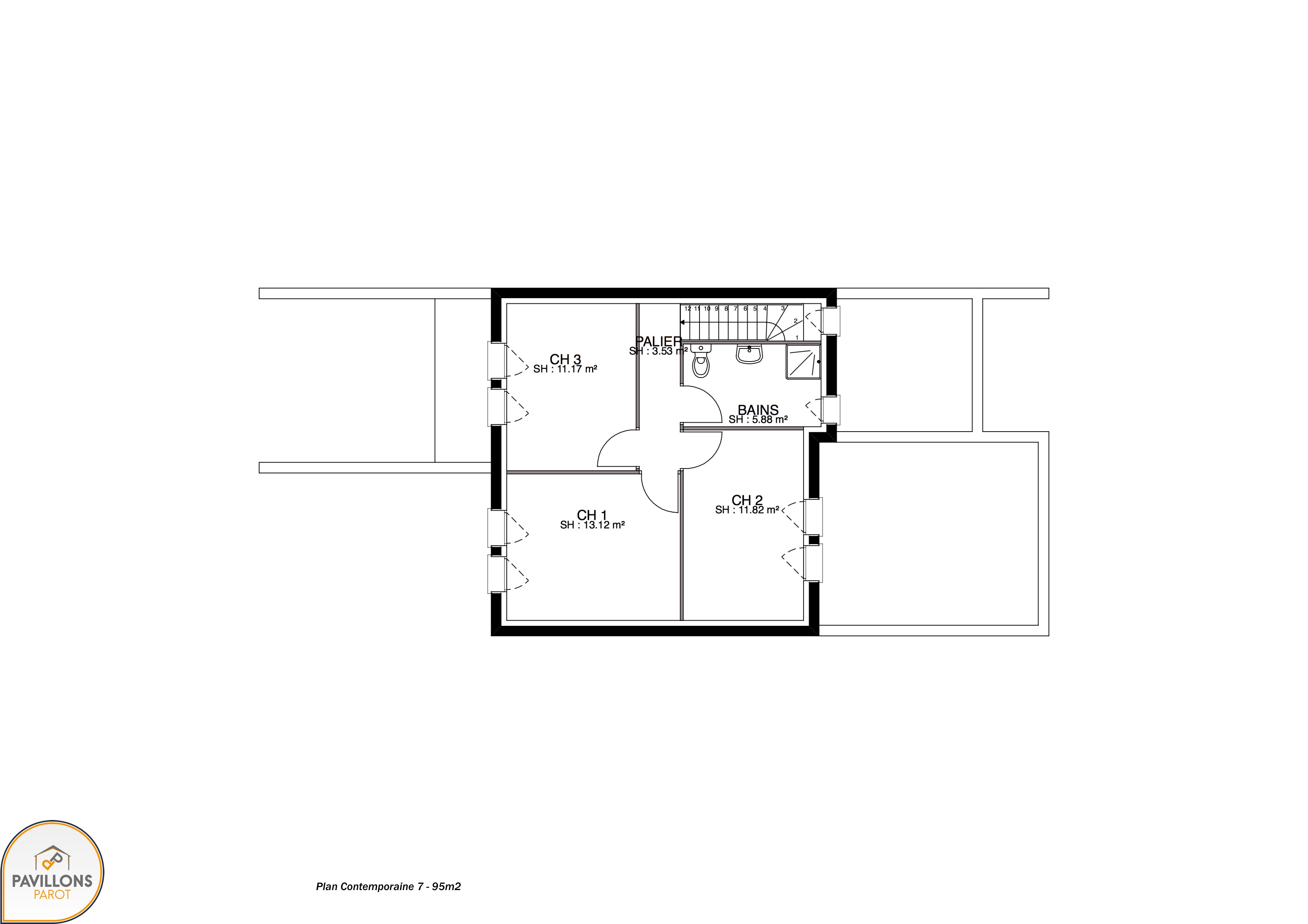 Sa surface optimisée offre de beaux espaces de vie. L’étage comporte, selon la version, entre 2 et 4 chambres confortables et une salle d’eau. Le rez-de-chaussée est consacré à l’espace jour, séjour, cuisine, wc, et un cellier sur les plus grands modèles. Elle dispose également d’un beau garage intégré. C’est une demeure lumineuse, dotée de belles surfaces vitrées.