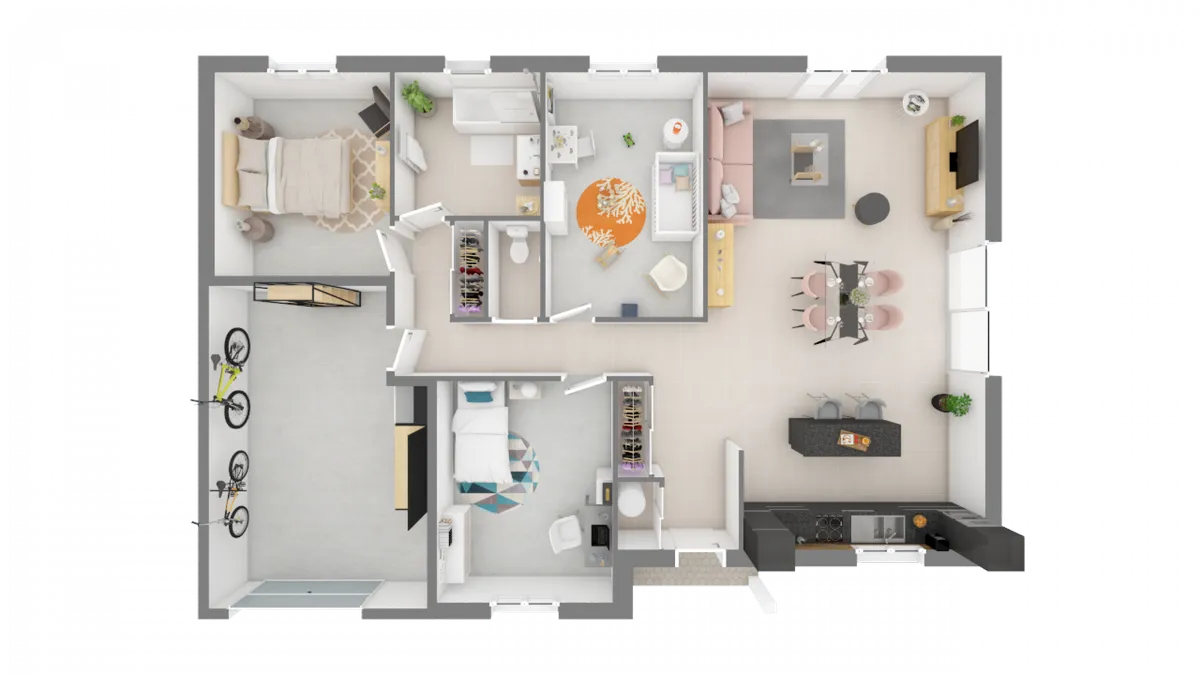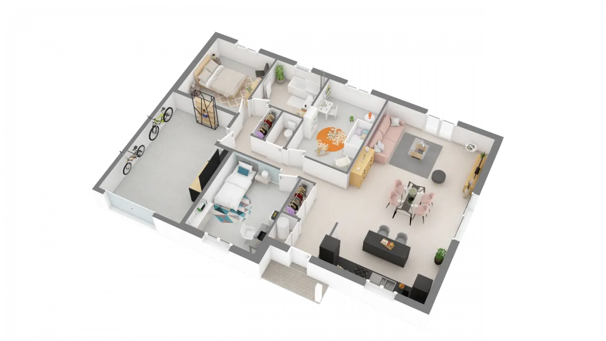 Fonctionnelle et facile à vivre, cette maison de plain-pied dispose de nombreux rangements. Dans des surfaces allant de 86 m² à 117 m², elle vous propose une organisation très pratique, avec un espace jour et un espace nuit séparés. Les chambres donnent sur un dégagement. Quant à sa pièce de vie, très lumineuse, avec cuisine ouverte, elle offre des dimensions généreuses. Avec son garage intégré, elle offre véritablement tout le nécessaire.