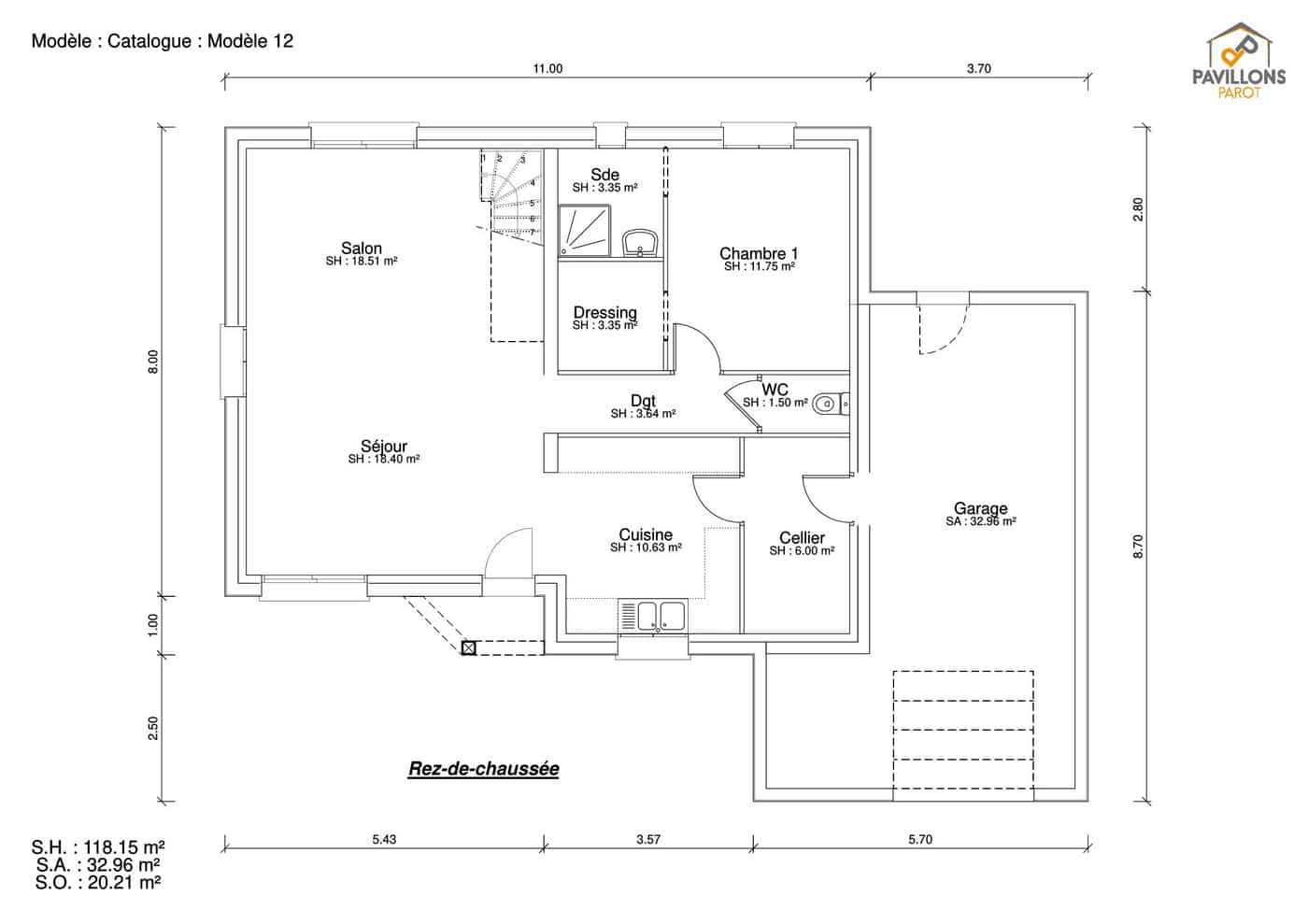 Quelle que soit la version, elle propose des dimensions généreuses, allant de 110 m² à 170 m². Ce qui lui permet de se composer d’une suite parentale et, chose rare, jusqu’à 5 chambres. Son séjour est vaste et très lumineux et elle dispose d’une cuisine séparée avec cellier communiquant avec le grand garage.