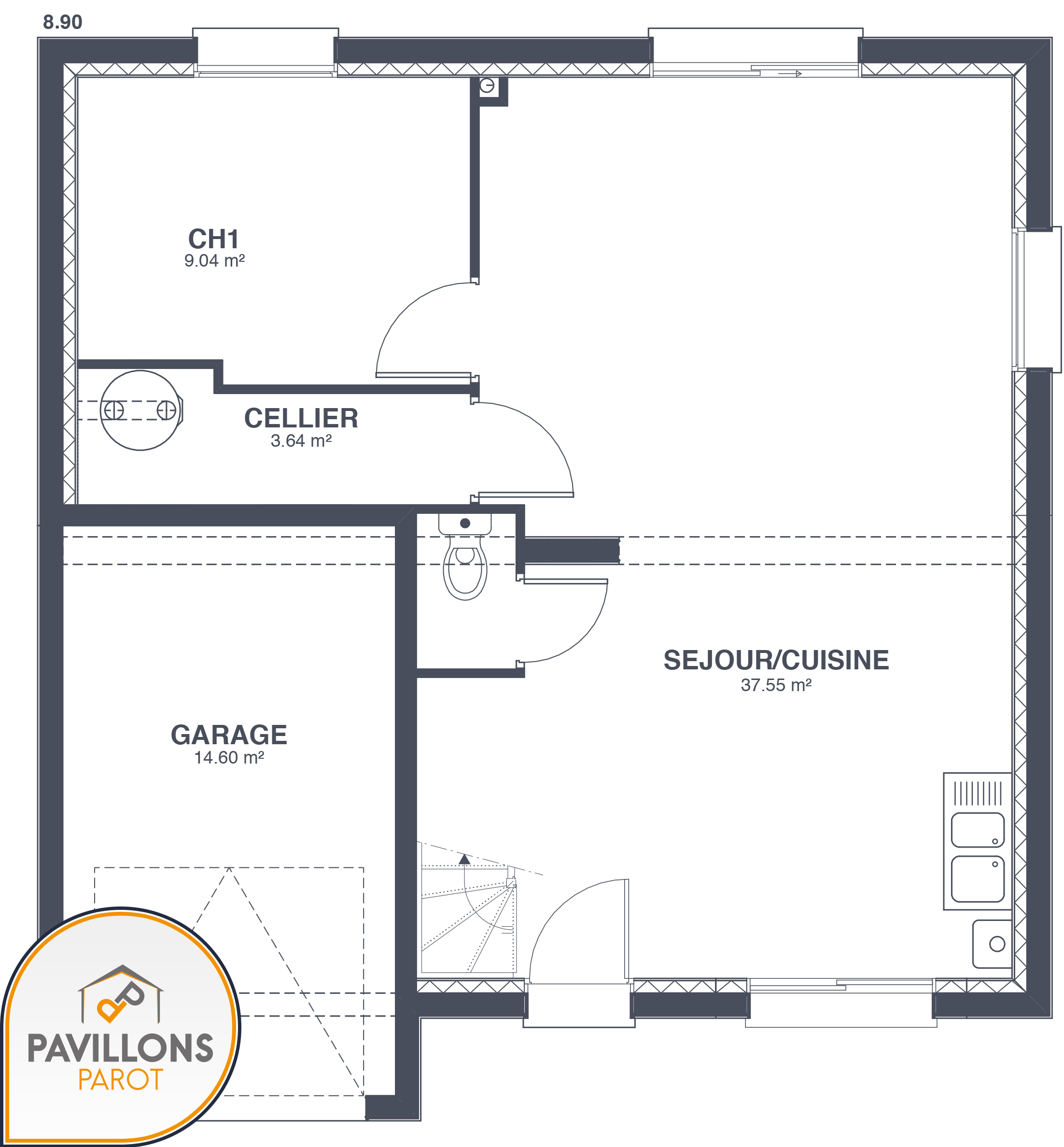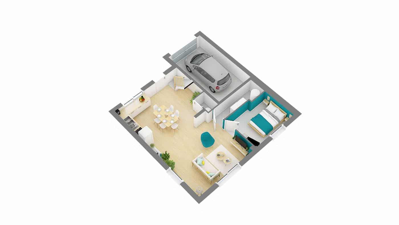 Une maison de qualité très abordable, c’est encore possible aujourd’hui ! Nous en voulons pour preuve notre modèle d’entrée de gamme Primae. Sur une surface de 85 m², cette version à étage est aussi conviviale et confortable que design. Sa disposition permet une utilisation optimisée de l’espace. En déclinaison 4 chambres, l’étage sous toiture se compose de 3 chambres dont une suite parentale avec dressing et d’une salle de bains. Le rez-de-chaussée est consacré à la pièce de vie traversante, la quatrième chambre, le cellier et le garage intégré.