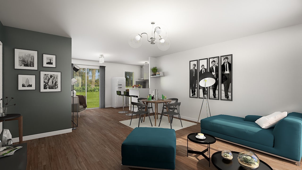 Rien ne manque dans ce pavillon familial de plain-pied. 4 chambres, un vaste séjour traversant avec cuisine ouverte, cellier et garage intégré. Elle est résolument contemporaine.